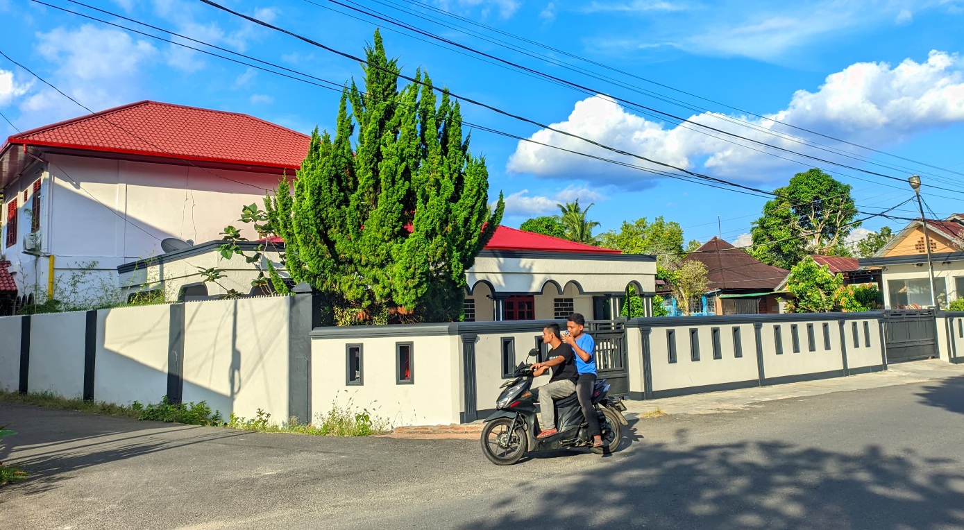 Menurut pantauan wartawan, rumah itu memili cat warna putih dipadu dengan hitam. Pagar dan rumah dicat putih hitam sedangkan atas rumah dicat warna coklat.